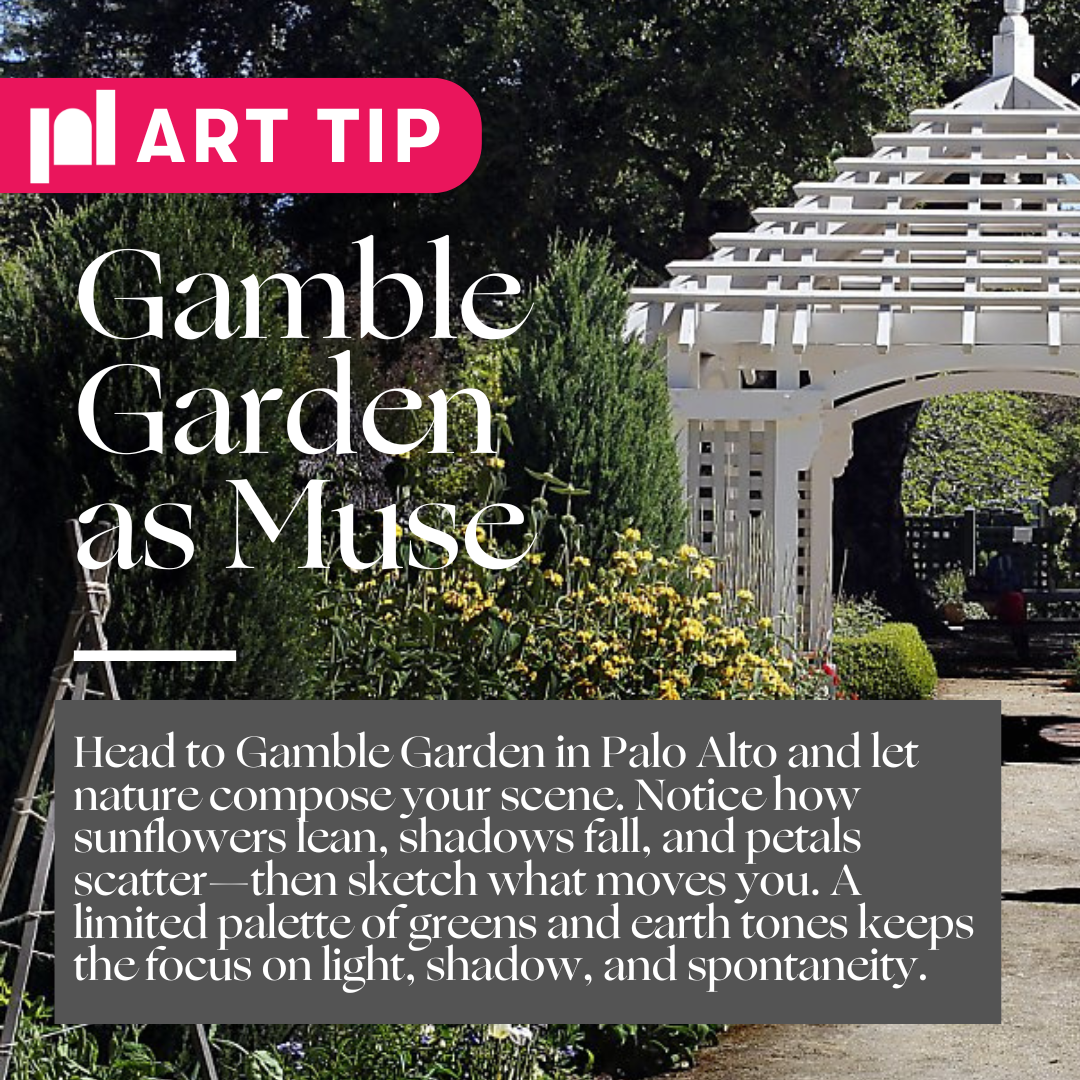 If you're searching for inspiration in Palo Alto, look no further than Elizabeth F. Gamble Garden—located at 1431 Waverley Street, Palo Alto. This historic garden is free and open to the public daily during daylight hours, offering artists a peaceful, ever-changing canvas. August is the perfect time to bring your sketchbook outside and let nature guide your hand. Whether you’re a seasoned plein air painter or a casual sketcher, Gamble Garden invites you to slow down and let your surroundings compose the scene.