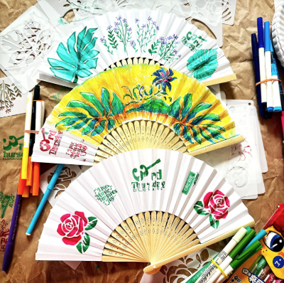 Join us at the PAL art table and decorate your own Folded Fans, celebrating the Dancing on the Street theme.